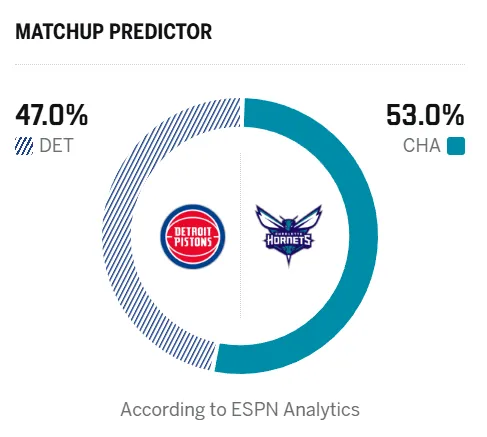 赛前,美媒ESPN猜测本场竞赛,活塞胜率47.0%,黄蜂胜率53.0%。
